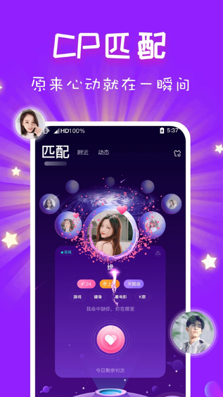 cp速配app是一款实用的情侣速配软件。这里有来自世界各地的美女帅哥,只要你们年龄相似,兴趣爱好相同,就能一键帮你匹配,帮你快速组成CP,同时也是情侣娱乐交友聊天必备神器之一,打造适合广大年轻人的交友平台。让有趣的灵魂可以有个美丽的邂逅,不再苦苦烦恼于单身问题,有着多种功能如相亲房,K歌房,大咖房等等。还等什么呢,赶紧下载起来交友吧!!!
