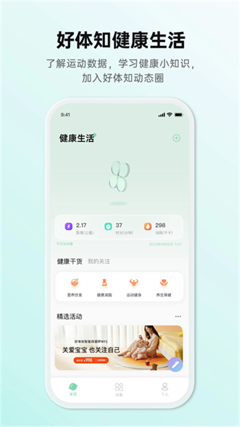 好体知app是一款健康运动的应用软件。该软件具有测评、趋势、目标、活动、设置等功能。用户可以自由的设置每天运动量,方便快捷,对于用户提高自己的身体生活质量有着很大帮助。主要提供健康检测和数据分析功能。就可以检测体内各种成分,并提供数据分析,同时监测一段时间内的身体各种成分变化、运动状况和督促运动改善体质。赶紧下载使用吧!!!
