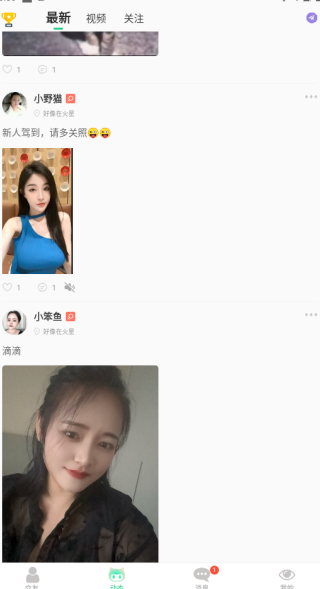 3.在这里,我们可以观看她的生活趋势,也可以发布我们自己的生活趋势,并获得附近用户的好评。
