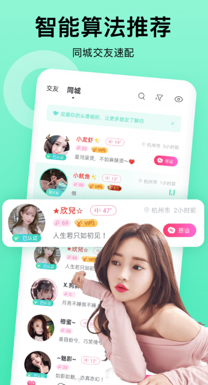 3.根据用户所在位置,实时智能推荐附近的优质用户,不错过周围的好运气。