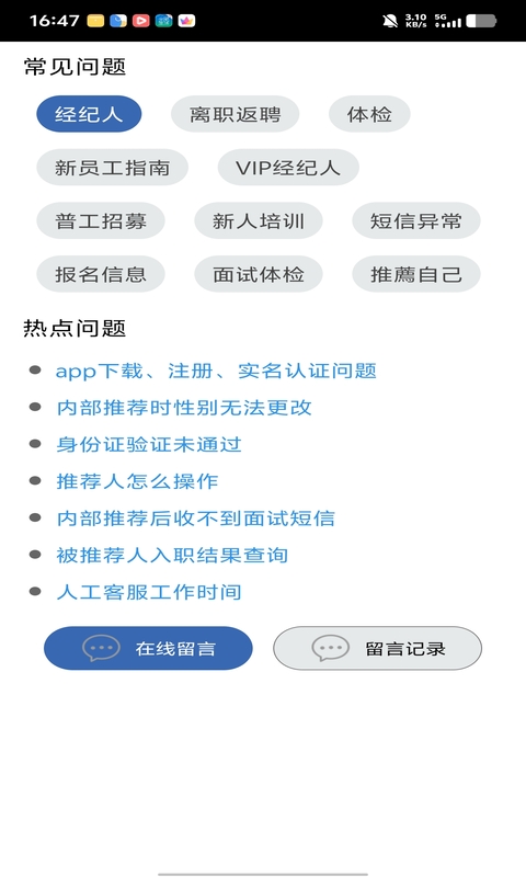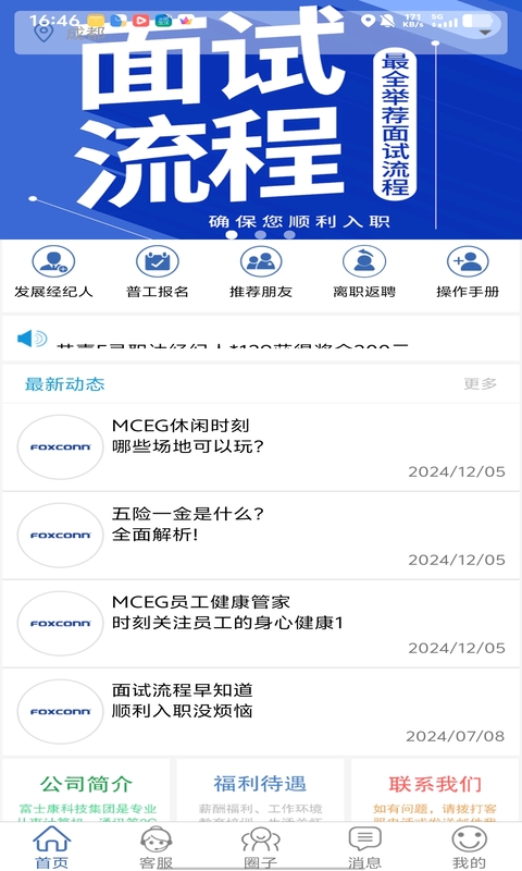 涵盖内部推荐,离职返聘,普工报名,经纪人等十大功能专区及公司介绍,最新动态,精彩瞬间等,全面满足您的求职需求。