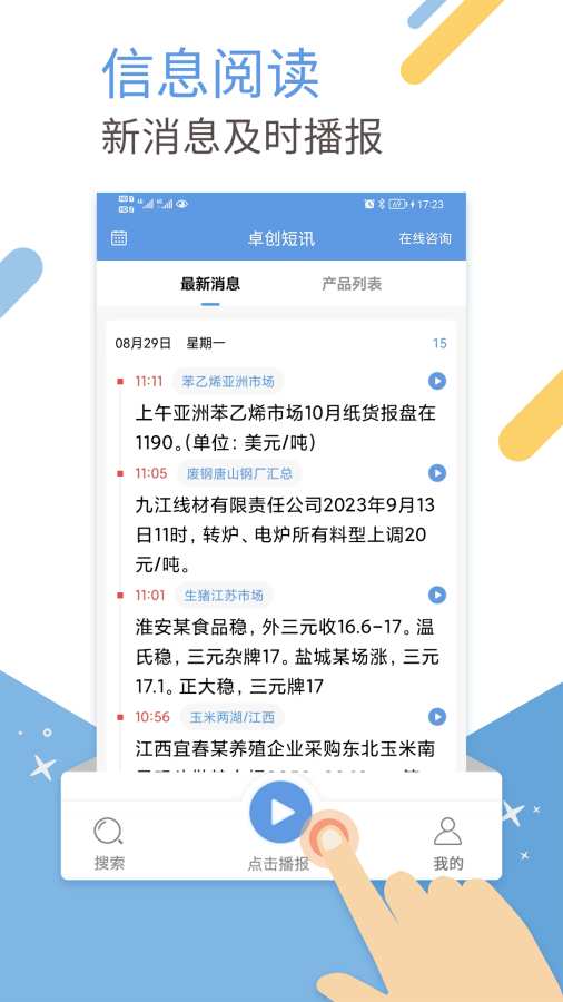 4、未来,您可以轻松收听卓创短消息手机客户端的语音播报,让用户不会错过相关内容。