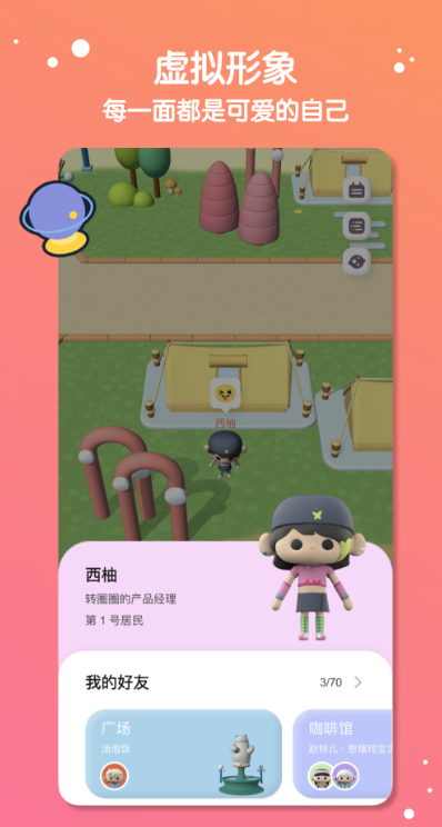 【虚拟世界】缓缓星球是一个平行于现实的虚拟世界,这里有惬意的海边小岛,偌大的冰淇淋雪山,憨憨的小猫原住民,希望来到这里的每一个居民都能暂时逃离地心引力,轻松做自己。