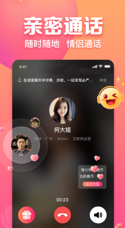 1、主要是为广大手机用户提供便捷的交友平台,可以随时通过语音进行互动;