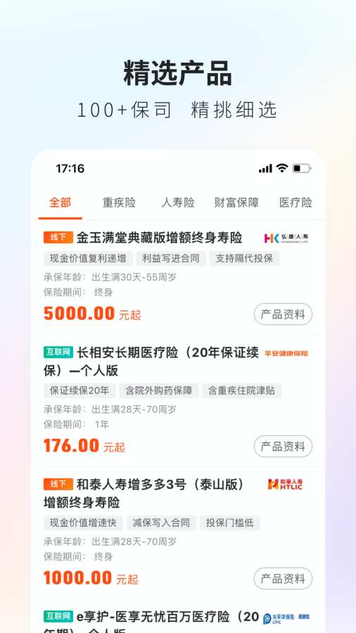 3、内置丰富保险产品,直接点击推荐产品封面就能进入查看