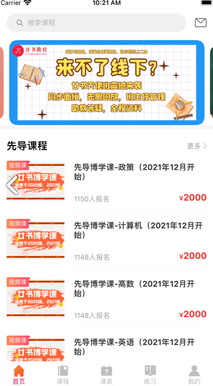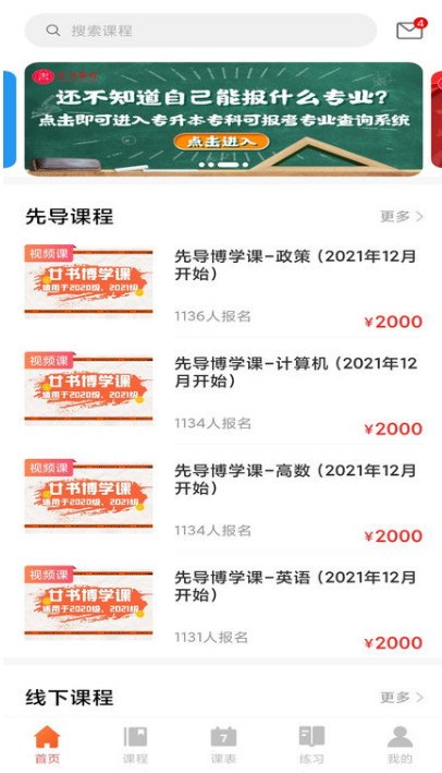 3、用户可以快速进入首页,快速在线选择你的课程。