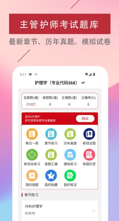 主管护师易题库app是一个非常专业的在线学习题库平台,这里拥有丰富的学习资源,能够满足不同用户的学习需求,所有资源都是免费提供给用户的,方便用户随时随地的在线学习,帮助用户提高学习效率,有需要的用户记得来007本栏目下载主管护师易题库!