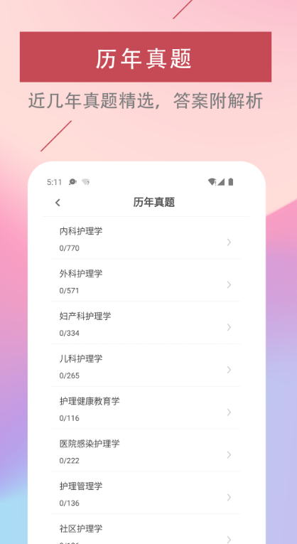 3.目前收录历年真题精选-内,外,妇,儿,护理管理学。