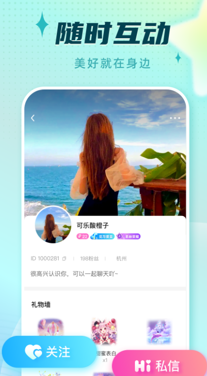 2、随时可以和自己喜欢的用户一起互动交流,互动方式很全面。