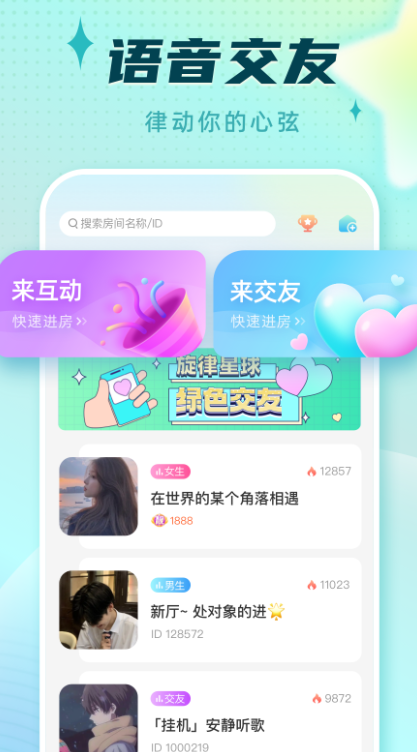 3、随时可以开启语音互动交友的服务,让大家可以体验到更多乐趣。