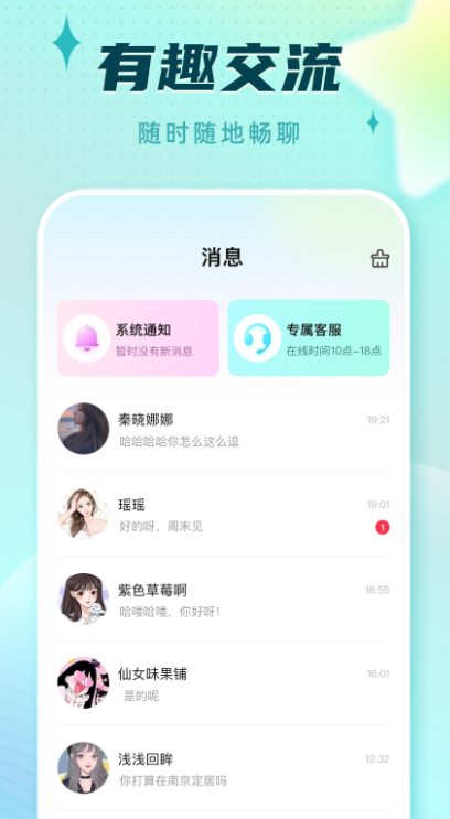 1、匿名昵称、语音互动,遇到中意的TA就大胆开聊,用声音把TA征服。