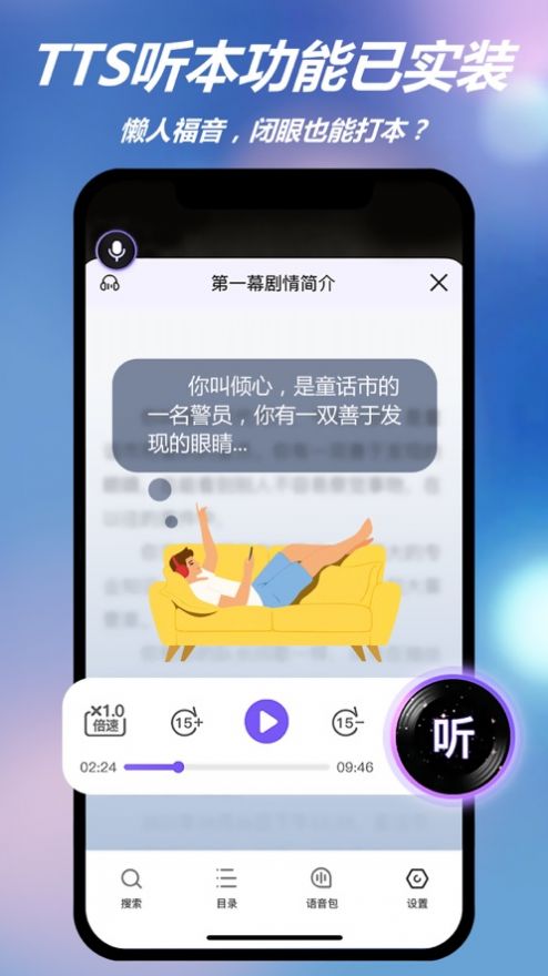 2、拥有专业声优配音演绎的音频剧本,拥有独一无二的“听本”体验;