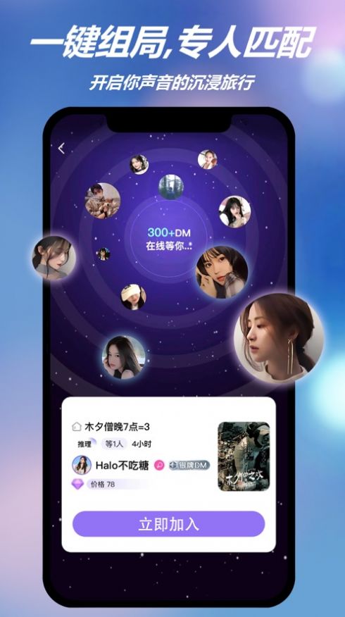 3、海量的高质量剧本,24小时真人主持人即时开本,稳定的即时语音。