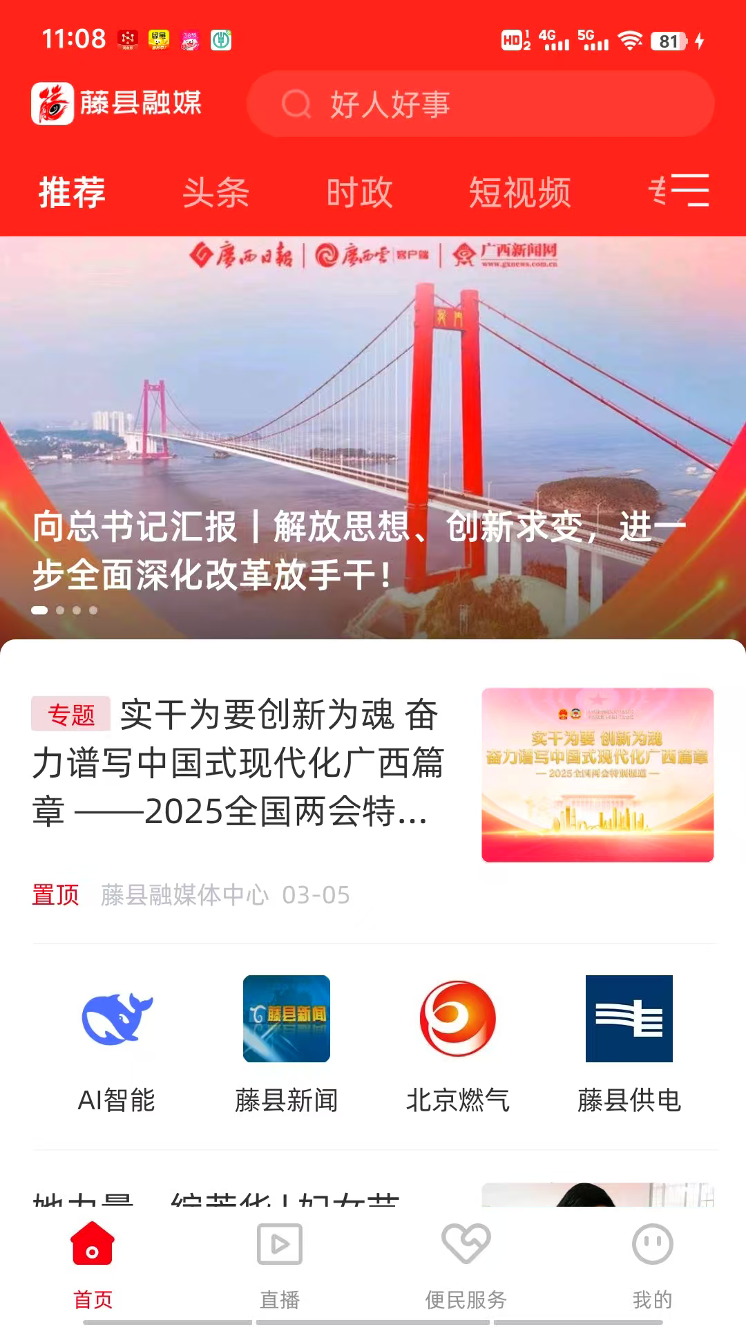 藤县融媒app官方下载2026最新版本是一款专门为藤县人民推出的手机融媒体平台,为用户提供最便捷的新闻服务资讯,每天都会有大量的新闻实时更新,定时向你推送热门新闻,让你无时无刻不在了解周边的事情,并且还可以在线办理各种生活业务!