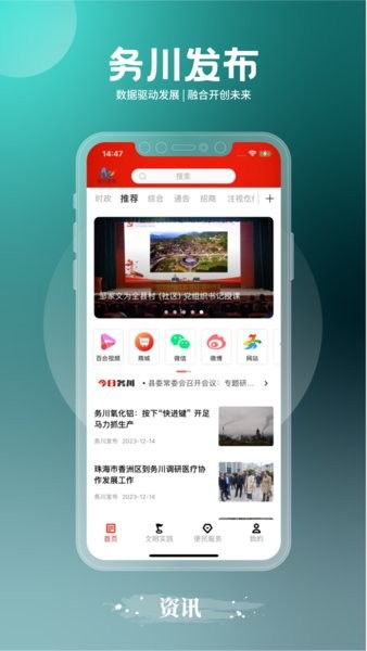 务川发布app是基于移动互联网技术打造的一款全新手机传媒平台,软件汇集了丰富的新闻资讯信息,每天为用户更新新的一手新闻资讯,同时为广大用户提供本地的新闻资讯、生活服务、政务服务、吃喝玩乐等推荐。