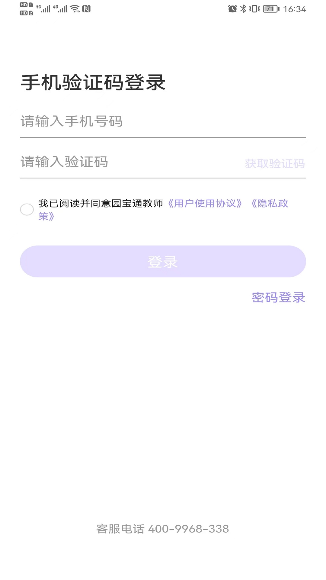 1、在应用商店轻松下载安装园宝通教师app,查阅服务协议和隐私政策后点击同意。