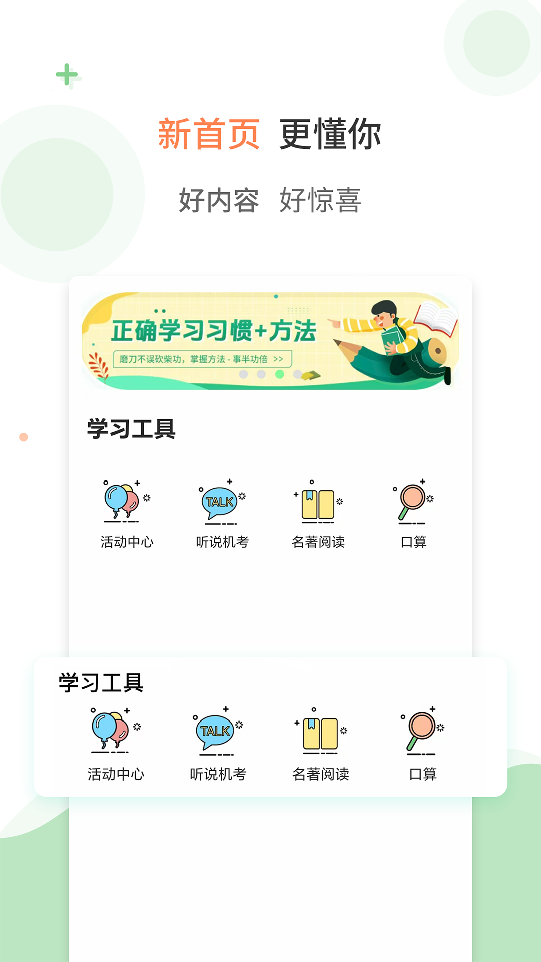 还有清晰的ai口语打分,超多的学习工具等你来用,全面提高您孩子的学习成绩,快来抢先下载安装吧!
