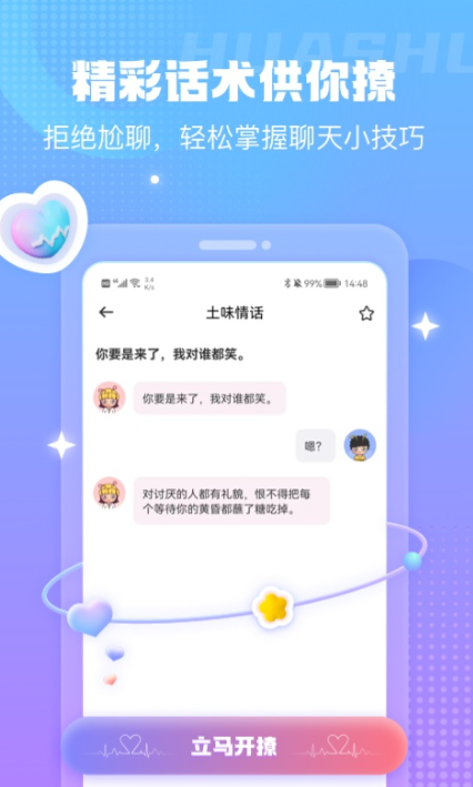 3、用户可以从此拒绝任何的尬聊现象,也能够快速的进行感情升温。