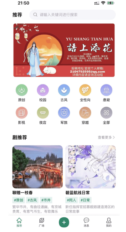 2、语擦将传统语C的模式完整复刻,加入了“圈子”“关系”“广场”“扩列”等玩法。
