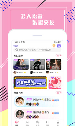 1、支持语音社交、休闲游戏等场景,年轻人的语音扩列交友平台;
