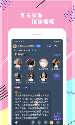 3、提供了麦序麦位、适合多种不同的线上互动方式。还有专属扩列频道,声音交友!