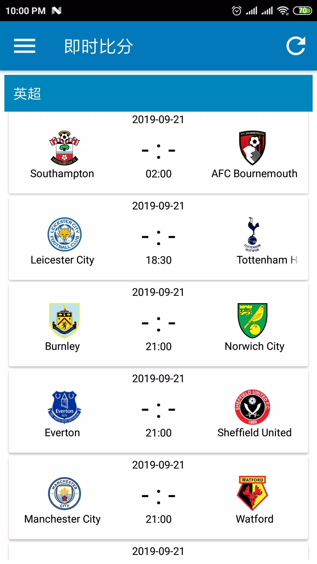 3、比如你对英超比较感兴趣,现在就可以来看看英超的各场比赛情况。