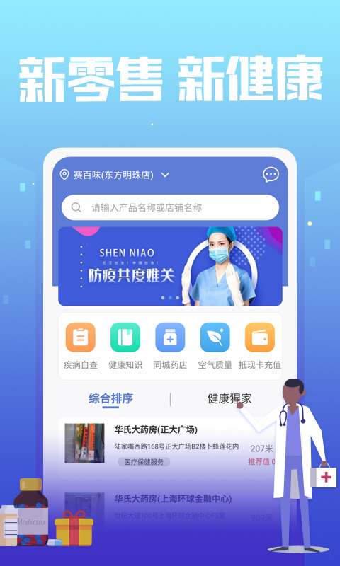 关注用户养生健康,为用户智能推荐附近药店信息,寻医问药,方便快捷,