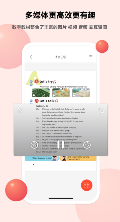 1、平台中的英语教材是非常多的,所有的教材中的内容都有它们对应的教学方式,用户们可以自由选择需要的内容进行学习。