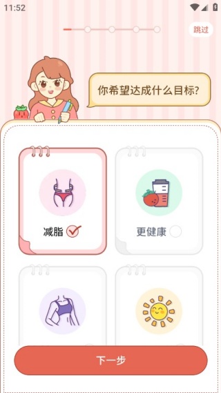 1、用户在线可以制定相关的瘦身目标,点击下一步。