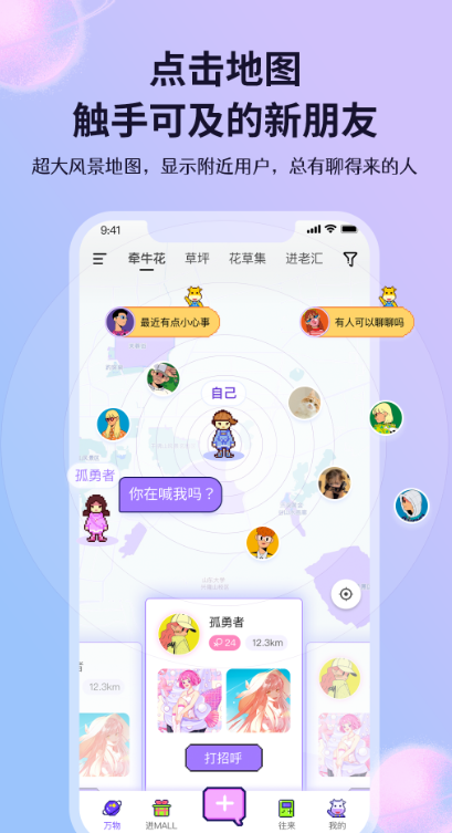 迸迸交友是一款非常好的在线互动交友平台。这款应用汇集了大量用户。在软件中可以定位你的位置,然后匹配你附近的人,一键打招呼,就可以聊天的,还可以线下约会的,可以轻松找到志趣相投的用户app拥有海量的用户信息,从这里寻找你的伙伴开始!