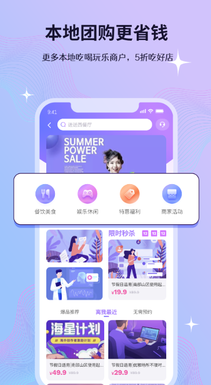 1、迸迸是一款依托于地图,集活动、社交、商家团购于一身的软件;