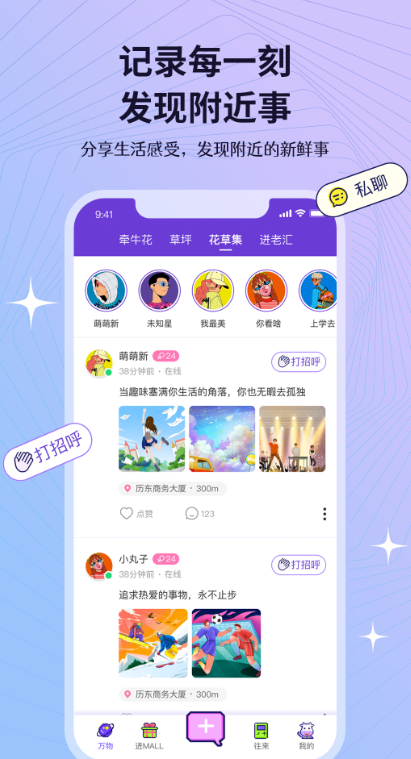 2、现在很多年轻人沟通不畅,交流方式低效,喜欢宅在家不愿意出门,迸迸的出现就是为了改变这一现状;