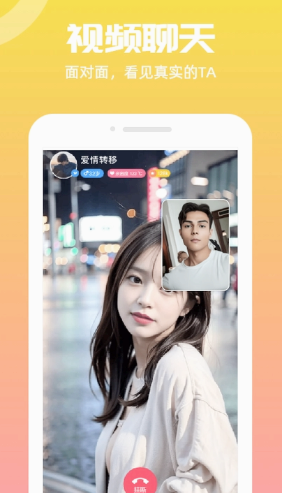 一款一对一视频聊天交友平台,大家都经过身份认证,确保每一个人都是真实的,喜欢就能和TA一起畅聊,开视频拉近聊天距离,聊出好感聊出火花。