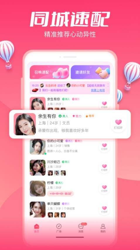 1、许多的交友的资讯,用户可以更好的进行线上的实时的选择,提升用户的日常的脱单的使用;