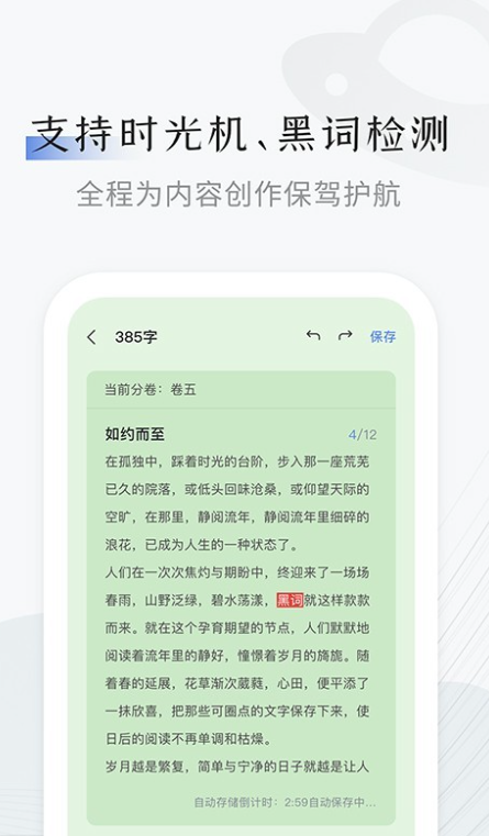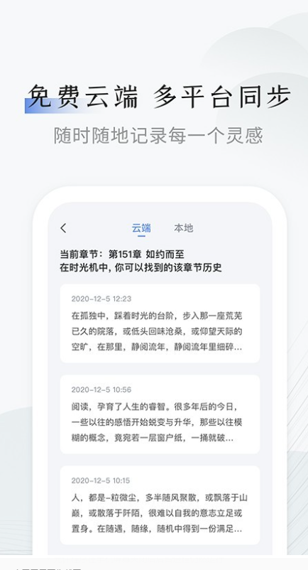 自由创作云写作平台,成倍提高写作效率,在这里人人都是作家,随时编辑记录下天马行空的世界,软件布局简洁,功能全面,支持多端同步使用,里面还有大量的小说来给你提供写作灵感。
