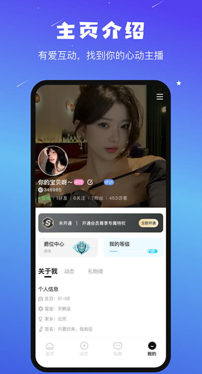 1、是款很不错的线上交友互动平台,在线一键交友;