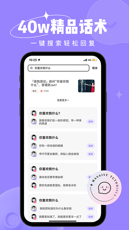 4、提供智能感情问答服务,轻松解决你的恋爱问题,提升你的语言魅力。