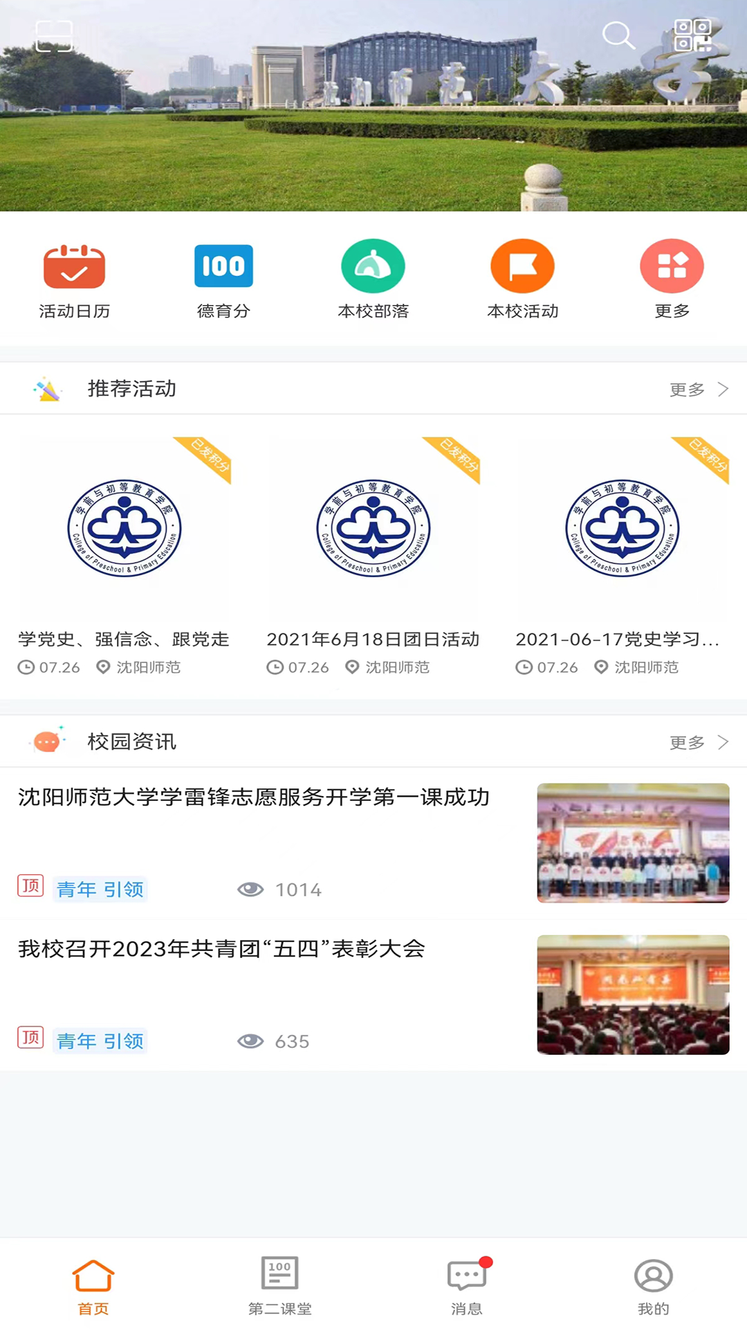 沈师青课堂是一款由沈阳师范大学(研发和运营的第二课堂相关的在校大学生实名制移动产品,沈师青课堂以高校第二课堂为切入点,提供活动管理、部落管理、第二课堂学分管理、校园通知消息管理等功能,是高校团委工作的工具盒,同时也是高校学生的百宝盒。