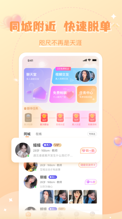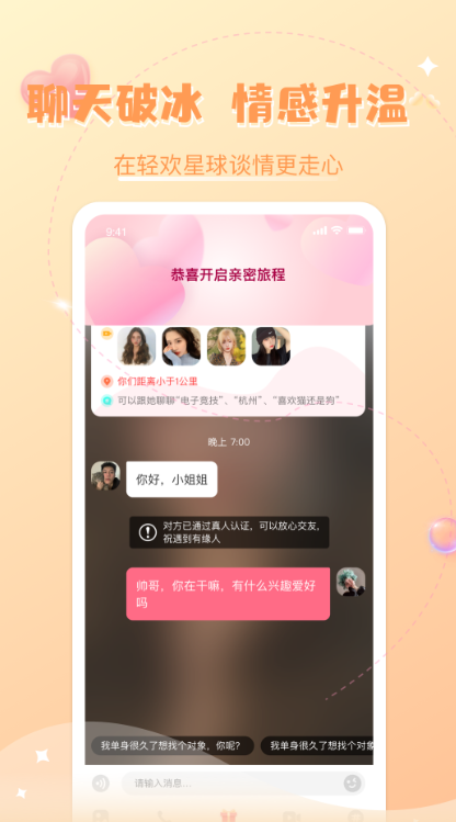 2、专业的附近约会软件,让你随时与更多人互动和交朋友;