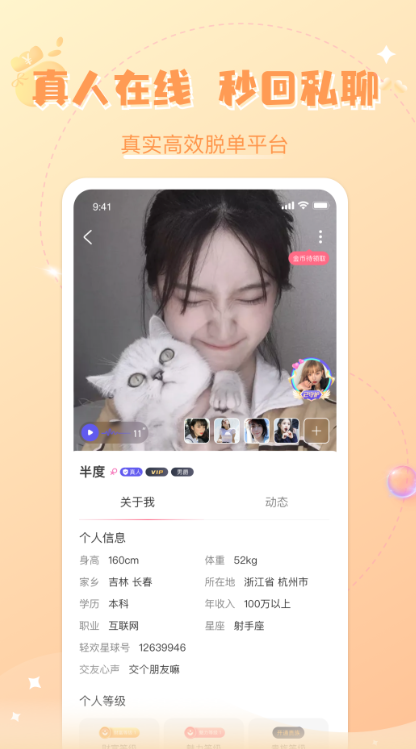 1、是款专业的手机线上交友互动平台,在线一键交友;