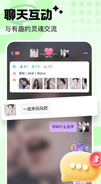 2、通过智能AI匹配算法,我们可以快速为你推荐彼此善意的异性,信息高效秒回;