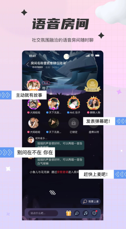 超好玩的语音连麦交友平台,多种玩法等你加入,探讨感兴趣话题,唱歌、开黑、语聊,与各地网友在线互动,放心交友,认识更多有趣对象,在线交友更简单。