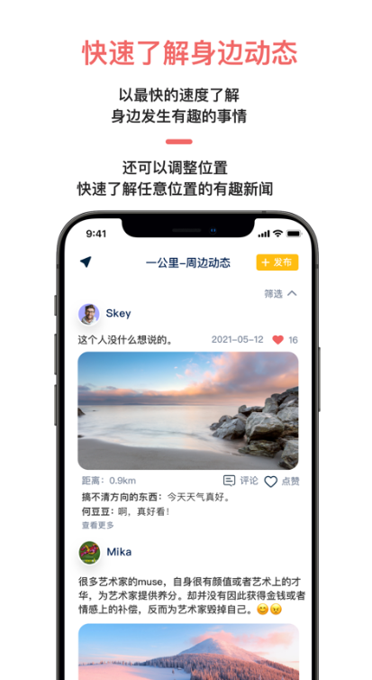 3.就近交友模式采用就近人员提供,方便用户看到附近的陌生人。