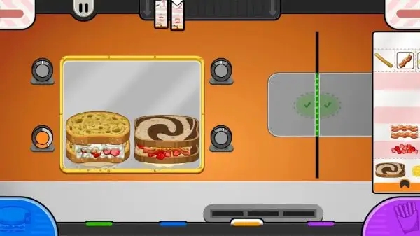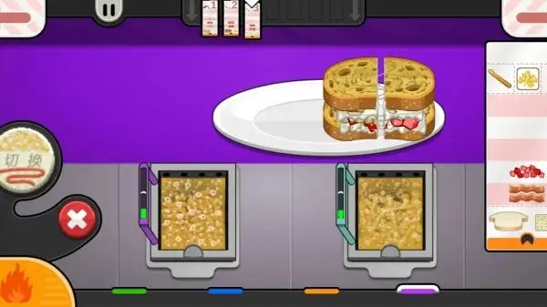 1、流畅而丝滑的游戏设定,精美的卡通画风和色彩搭配,解锁不同馅料并开始制作三明治;