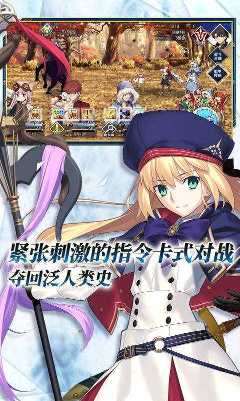 在《Fate/GO》中,战斗通过对从者下达的命令用指令卡来表现,通过回合制的形式展开指令战斗。战斗分为战术阶段与指令阶段,根据您的选择,从者会分别发动攻击。己方攻击后,转为敌方行动。敌方行动后一回合结束。
