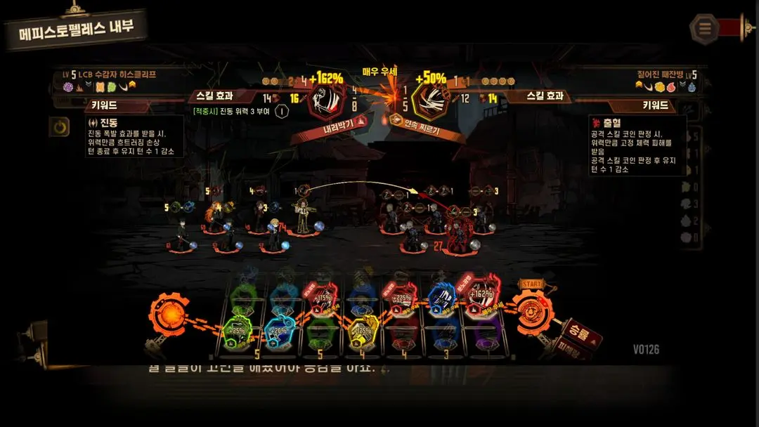 战斗阶段双方会同时行动,可能会互相冲撞到一起,最终谁胜谁负取决于角色的技巧强度和一点点运气。