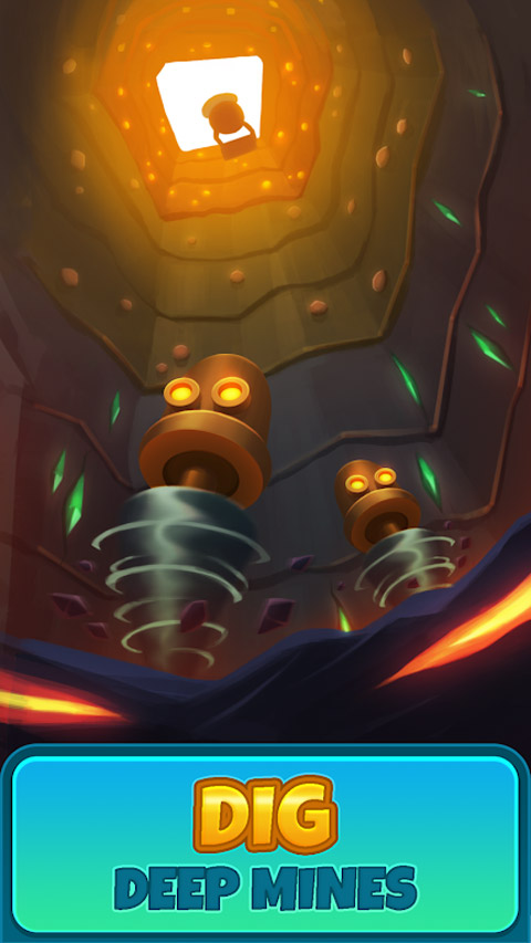 深城安卓游戏,是一款卡通风格的放置战斗,各种各样的矿工,获得丰富的奖励,去探索这个奇异的世界,探索地球的表面之下战斗,利用自己的高科技去在地下深处去挖掘,超多的设备可以去随意的游动,去挖掘宝石来加工制作出物品!