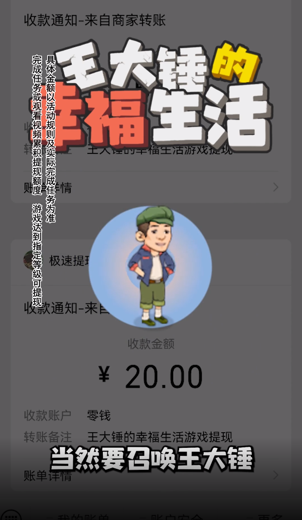 王大锤的幸福生活赚钱游戏上线啦!在这里玩起来简单并且还有可以领取大量红包,在这里红包都是可以直接提现到微信里面,在这里超级英雄王大锤可以帮助提升收益,记得来007本栏目下载王大锤的幸福生活游戏最新版2025!