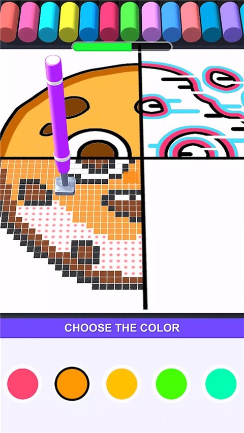 一款玩法解压有趣的休闲绘画游戏,尝试四种不同方式的绘画艺术,并将其拼接起来,创建出令人意想不到的作品
