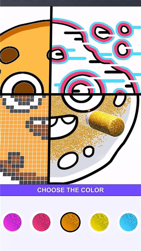 1.在这个填色游戏中,你来画吧!释放您的内在艺术家,并创建由不同风格组成的图片。将您最喜欢的肖像或任何绘画分成四个部分。喷漆、霓虹灯、宝石、闪光粉……你能想象到的每一种画!